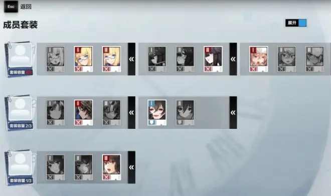 这里我比较建议使用A+A+A的3A组合或者三独域组合,因为大家的熟练度经验需求是一样的,你上阵的人越多单局获得的经验也就越多,这样就能更快的积累【调制解调器】来解锁额外招募点