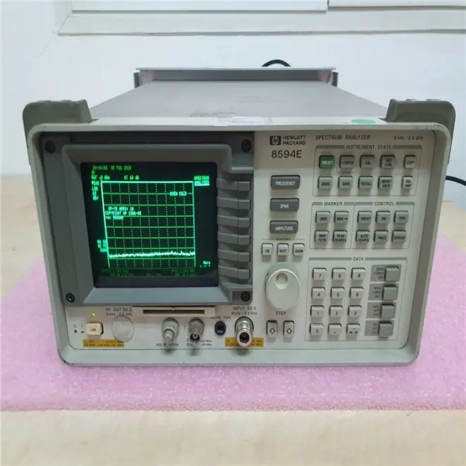 8594E 是安捷伦的 2.9 GHz 频谱分析仪。频谱分析仪测量已知和未知信号的频谱功率。频谱分析仪收集信息,例如输入信号与其频率相比的幅度。作为频率分析仪,频谱分析仪的主要用途是记录和分析电输入信号以及其他信号的频谱成分。