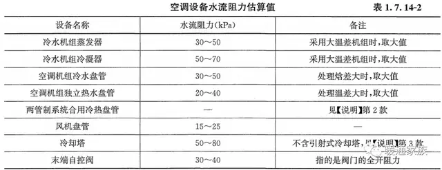 ②、采用冷热合用的两管制冷热盘管末端时,盘管的冷水流动阻力可按照空调机组的冷水盘管阻力考虑。
