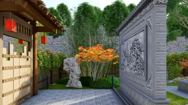 院子主体的走廊、门窗,都用仿古线条进行了装饰。中式庭院装修最重要的就是细节处理,而不是简单地元素堆砌。