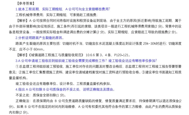 这套一建市政案例55答题模板大家可以先做,然后对答案,结合自己有哪些不足,及时查漏补缺,这里面将一建市政历年考试真题及高分案例总结而成的标答模板,直接背会,不管考试怎么出题,都能答到采分点上