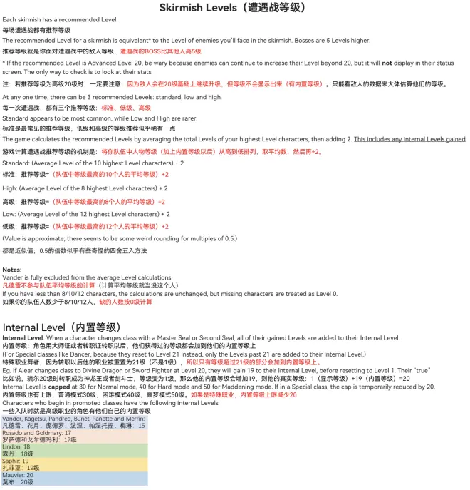 注:若推荐等级为高级20级时,一定要注意!因为敌人会在20级基础上继续升级,但等级不会显示出来(有内置等级)。只能看敌人的数据来大体估算他们的等级。