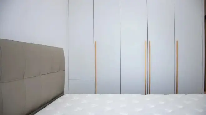 浅色的墙面,充沛的光线,首先就为室内营造清爽与通透感。白色的到顶衣柜很好的融入整个空间,简约不复杂的造型,自带温柔的卧室氛围,充满优雅的气息。