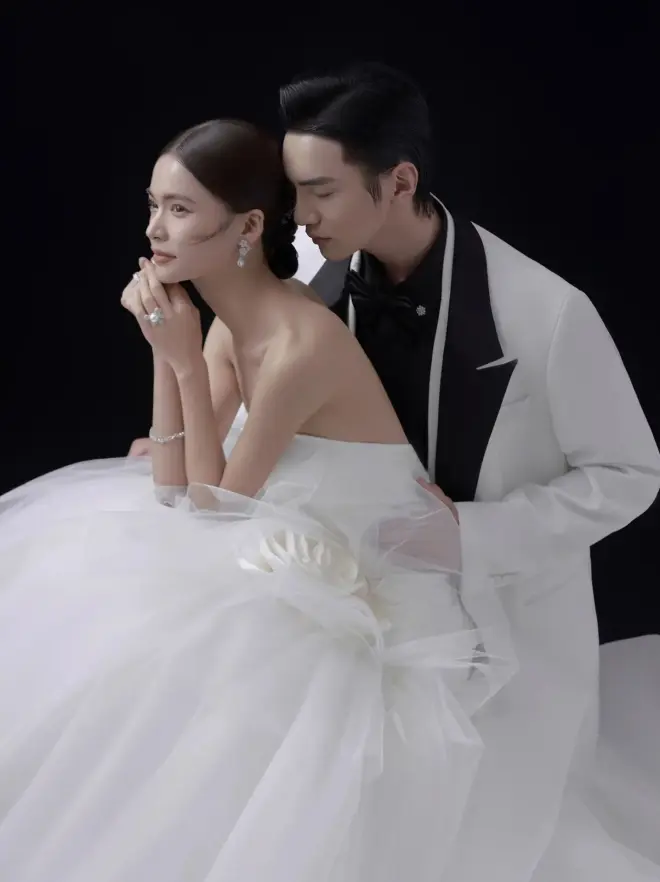 尝试一下黑底纯色婚纱照吧~经典永不过时