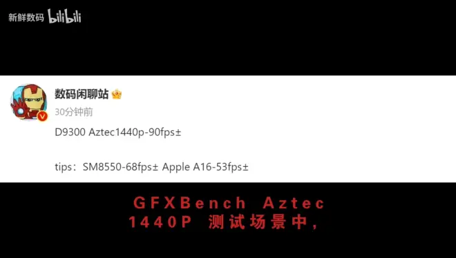 ◇ GPU表现:联发科天玑 9300 处理器在 GFXBench Aztec 1440P 测试场景中,性能表现极其优异,帧率高达到 90fps ! 远超高通骁龙 8 Gen 2 处理器的 68fps 和苹果 A16 处理器的 53fps,同时领先苹果M1。