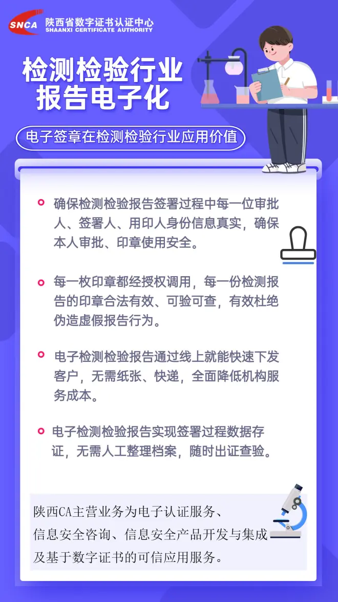 检测报告无纸化业务是检测行业发展的潮流,由电子检测报告替代纸质检测报告并在检测管理系统中进行电子化流转,无论在降低纸张购买、流转、存储成本方面,还是在提高效率、防止证书复印伪造、私自颁证方面,均具有传统业务模式所不可比拟的先进性。