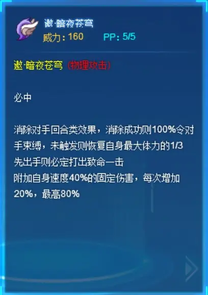 遨天的第五断回合多了一个控场,虽然是束缚控场,但是由于遨天138的超高速度种族值,挂上束缚就意味着对面只能和遨天拼纯数值,只要我们不是泰坦加风,对面来个K13全家桶,那基本上我们是不会输的(年费团除外)。未触发的回复能力也能和魂印的免控以及闪避联动起来,先手必定暴击的效果是机盖最开心的事情,根据速度来附加的固伤也保证了遨天的粉伤有一个基本保障。