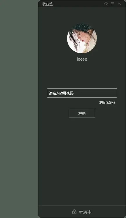以Windows电脑端为例,点击头像,在个人设置中设定1-6位纯数字的锁屏密码,之后当你有事必须离开电脑时,只需要在主页面点击“锁定”即可,不用退出软件也不用刻意关机,一键保护隐私。