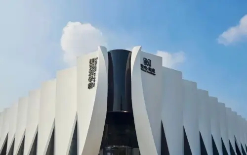 學館建筑本身自成风景:外立面现代、简约,有序列队组合的体块,像从天而降的洁白石块,沉稳厚重;优美而富有旋律的线条,又仿似自然灵动的白色羽翼,唯美轻盈。刚柔相济,绵延向远,只需静静矗立,足以独揽蔚蓝天空下的一隅风景。