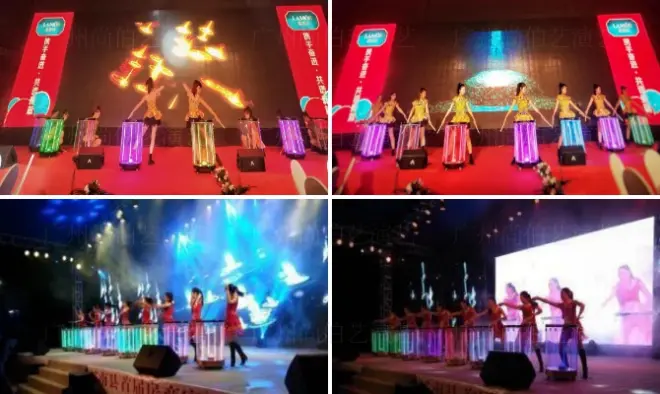 节目介绍:尚伯艺《时尚创意显字视频鼓》 是全息视频水鼓表演节目,其不仅可以显示文字、LOGO,还可以 播放素材视频、电影电视视频、 企业PPT,广告视频片、新品上 市宣传片、企业宣传片等,是集 合水、电、光与视频于一体的全 新时尚创意鼓舞。