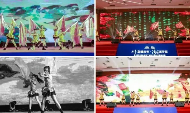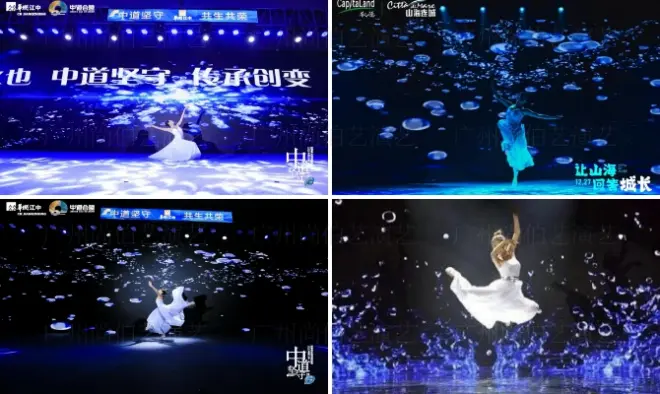 节目介绍:繁花似锦舞者根据特制的视 频进行互动表演,视频中出 现花团锦簇的情景,寓意锦上添花的美好未来,极具震 撼的视觉效果。节目视频可 根据企业需求,适当加上品牌LOGO、文字以及活动主 题等,尤其适合美容、化妆品、酒会等晚宴活动。