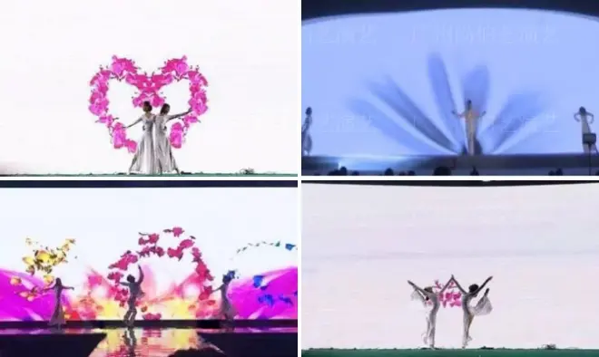 节目介绍:LED屏幕上随着舞蹈演员的 肢体挥舞,一瓣瓣鲜花在空中飞舞,经过一次次的飞转又汇聚。向往着美好未来的花瓣最后碰撞在一起,绽放出生命迸发的芬芳,飘散在追逐梦想的天空中。