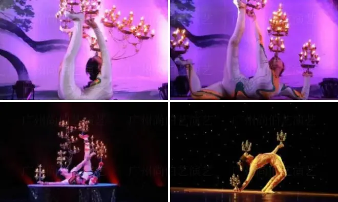 节目介绍:以集舞蹈、杂技为一体的滚灯 具有独特的魅力。在柔术利用身体的柔性之外,再加上道具灯座一个一个地顶上身体,完成一次又一次的不可思议的姿势,给人赏心悦目、心旷心怡的感觉。