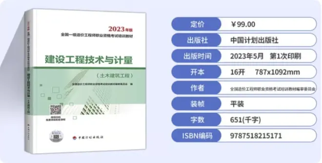 一造教材两年一换,这个钱大家不能省。2023版教材上市时间比预期要早,案例教材已经可以现货购买了,管理、计价、土建计量预计本周也会上市,安装计量预计下周上市。大家无论在哪购买,一定问好了是不是2023新版的,其中案例教材是城市出版社出版,其余科目是计划出版社出版,各科封皮如下: