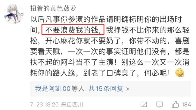 也有人直指看沈腾电影是“浪费自己的钱”。