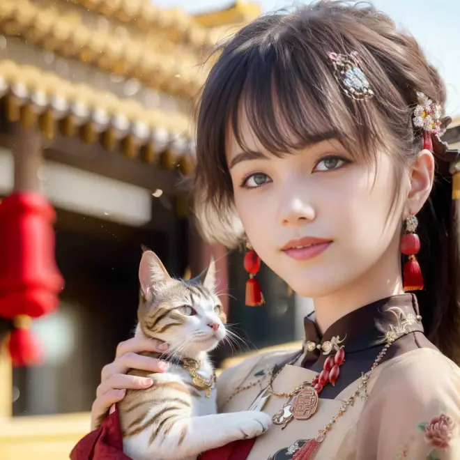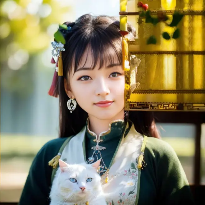 AI画汉服少女与猫(第二弹)