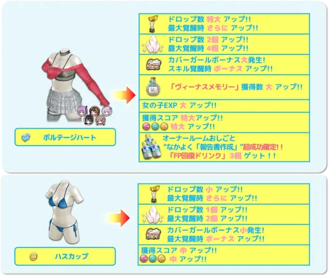 活动SR泳衣为“板凳对策”,每一个身穿活动SR泳衣的未上场角色都可为比赛得分提供加成。且随着突破额外提升分数加成。