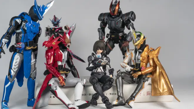 这次点子来源就是之前看到Figma的图书委员长的配件里面有一本小书,正好假面骑士圣刃也有书这个主题,于是就将两者结合一下。想出了假面骑士圣刃里面的角色被书给吸引的简单小剧场|ू・ω・` )