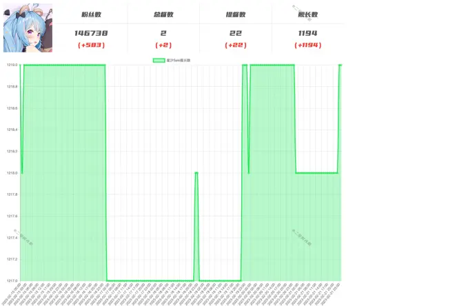 观看指南: UP名字可点击跳转;增长数据红色为增加, 蓝色为无变化,绿色为减少;预测数据 红色可信度最高,蓝色其次,黑色最低
