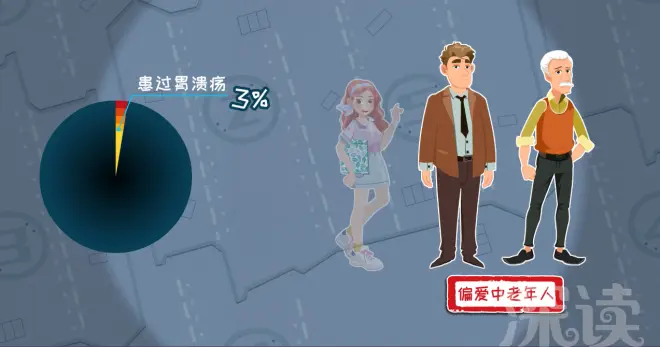 另外,胃溃疡这货还偏爱中老年人,各位叔叔阿姨、爷爷奶奶们可都要小心啦。