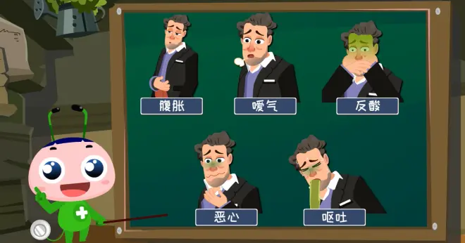 “感觉吃下去的东西全堆在肚子里,胀得慌,嘴里还老是酸酸的。”