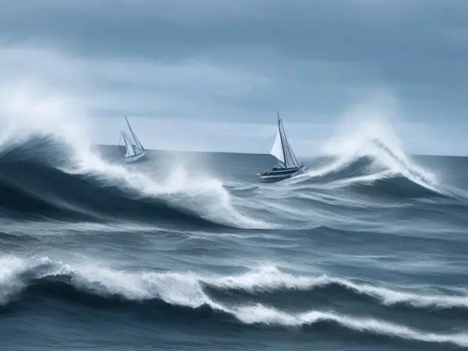 郑和站在天元号宝船的舰首,他的面前,是笼罩在热带风暴中的孟加拉湾。对于当时的任何船队而言,遭遇风暴都是一场噩梦,强劲的飓风把海洋翻转过来,轻易的就像翻起一张纸。所有在风暴中迷失的舰队,最终都会葬身在这轻盈的蓝色之下。但郑和的舰队显然不属于此列。旗语在舰只中传开,经过训练的船员都读懂了旗语所代表的不可违抗的命令:
