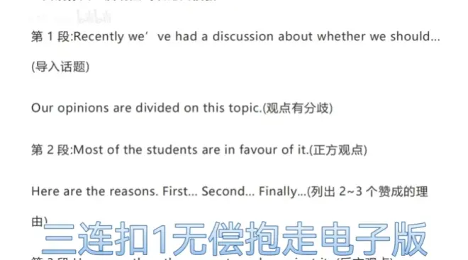 第2段:First of all.Secondly.Besides.列出2~3个赞成或反对的理由