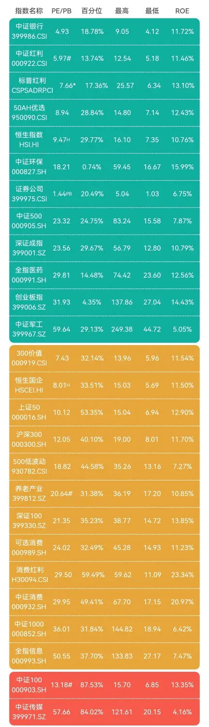 注:❶表格中绿色品种为低估,适合定投;黄色为正常,可以暂停定投或继续持有;红色为高估,可以卖出;
