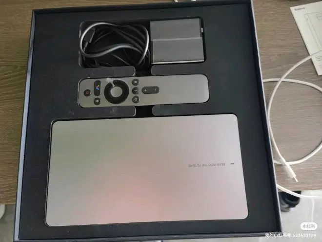便携投影最大短板就是亮度,看了一些评测后选了激光光源的峰米X1,亮度相比其他LED投影虽没有标称值那么夸张,但也有质的差异。 具体效果如图,一张强光环境一张弱光环境,都还不错。