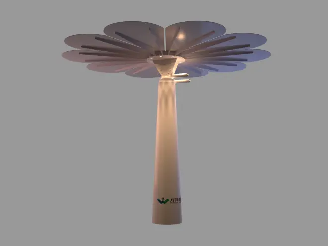 光伏向日葵是一个可移动、可调节的光伏储能系统。使用全球定位跟踪算法,可以全天跟踪太阳的路径。即使是在多云的天气下,也能使向日葵叶片追踪太阳的位置进行水平和垂直移动,这保证了向日葵与太阳始终保持着最佳的发电角度。当太阳在早晨升起时,向日葵会由放平状态调整成倾斜角,并通过将叶片与光线设置成90度角开始吸收能量。