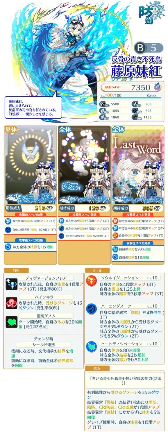 ,终符段落的硬质加成很高,吃了特攻的亏,特攻比较窄还很杂,作为防御式来说自身能免疫的异常不算多,全体破异常的能力一般,在现阶段和以后的复灵塔时代来说防御式没什么太大的亮点,比起持久战,更注重小卡的伤害,在较短的时间内完成速通。因此暂时只能坐在冷板凳上,能用但是不能成为最优解。