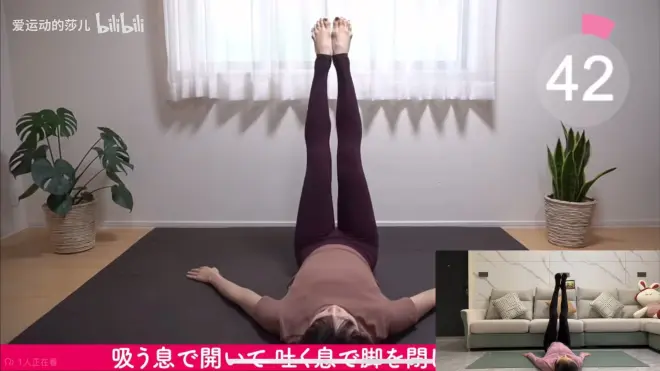 1.背部紧贴瑜伽垫,腿部和臀部抬起,交叉开合,坚持五十秒