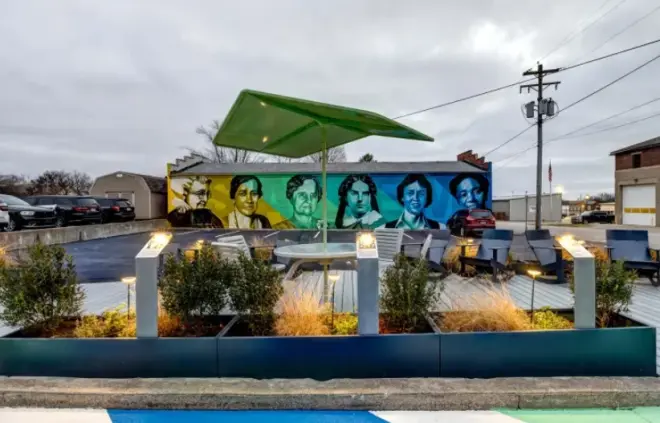 位于印第安纳州塞勒姆的遗产公园是由哥伦布LAA多学科设计工作室设计的一个新的口袋公园。该项目源于印第安纳大学乡村参与中心和服务设计中心,他们为公园的初步研究提供了资金,并由地方性组织提供了大额拨款作为建造资金。LAA工作室在塞勒姆中央广场和约翰·海伊中心之间创造了一条新的线性路径,这片占地5英亩的园区中有一个历史博物馆和华盛顿县历史协会运营的历史建筑。遗产公园将这两个原本分离的地标建筑连接起来,用充满活力的蓝与黄色色调的沥青壁画以及艺术家Rafel Blanco的公共艺术作品构成的新平台和花园,来纪念华盛顿县历史上的重要女性。