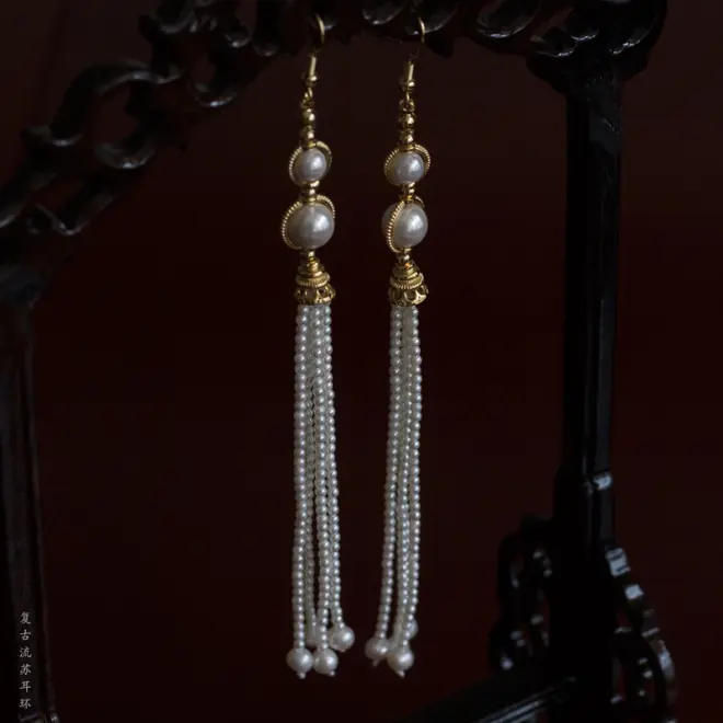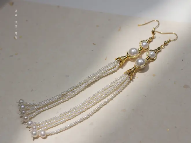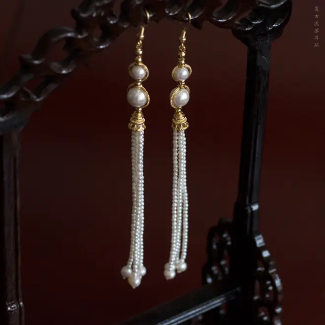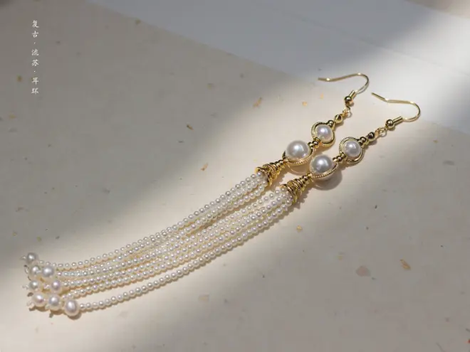 » 【簪娘】米珠 · 长流苏 · 耳环