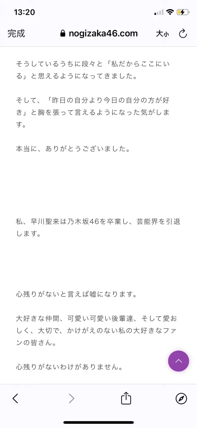 比我想象的还要快 在Seigo和索尼双打做实她不实告发的一刻她就不可能留在演艺圈了。 但是我承认 我没有设想过会有一个小偶像站出来揭露黑暗面。因为这个代价是她无法承受的。这是光荣的负伤。这个引退也会成为一份荣耀。 渡边麻友式的荣耀是属于她自己的,我们只能为她喝彩,早川圣来式的荣耀是属于其他所有人的,无法喝彩但惠及八方。