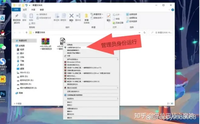 解压好了以后就可以看到修复文件,鼠标移到修复文件上方,右键选择以管理员身份运行打开;