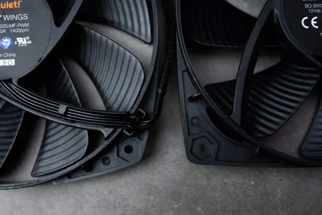 随机搭配的散热风扇大有来头,分别是一颗Silent Wings 3 135mm风扇和一颗标准型135mm Silent Wings风扇。熟悉bequiet!的小伙伴一定都知道他们家产品的静音效果那是大名鼎鼎,它们都能做到低于27.1分贝,近乎无声的运行。
