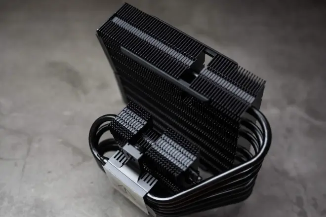 6热管是目前风冷散热器的最高规格了,厂商在每根热管上加入了特规黑色陶瓷涂层,用以增加导热效果。