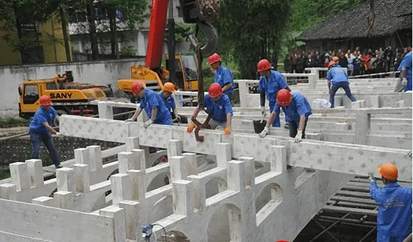 当天上午10时,随着开工鞭炮的燃响,两台吊车轰鸣,十几名工人开始忙碌,短短45分钟,一座全新的秸秆纤维桥诞生在三元镇这个以“三月菜花香”而闻名遐迩的小镇上。