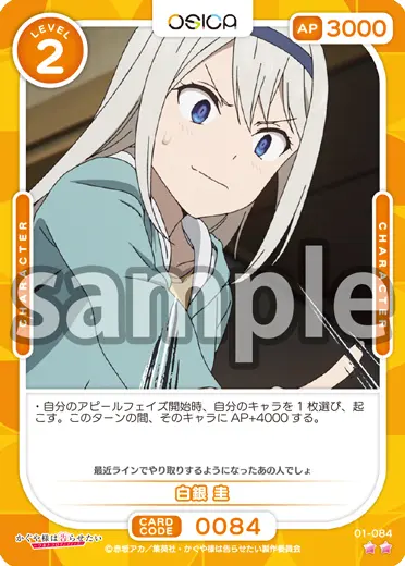 一模一样的二效果,可以减任一本家卡对位角色4000的数值,很灵活。费用都要3费显得无法理解,辉夜这单没有复活推卡,费用应该更便宜些,况且减4000也不是一步到位达到想要的效果。抛开费用问题不谈,4级弥子的5000身板也是诟病的一个点,就是说始终会比对方的4级角色矮一头的感觉(原作中身高150cm,这才是设计的目的吗!),因为5000的身板随之带来的负面Debuff就是容易吃到很多对面的效果(该给个魔免吧?),整体设计上有种SR失格的感觉。而5级弥子问题在于自带的Charge才4000,无法理解,5级卡怎么说也该要有Charge6000吧?!同样是SR失格的感觉X2。