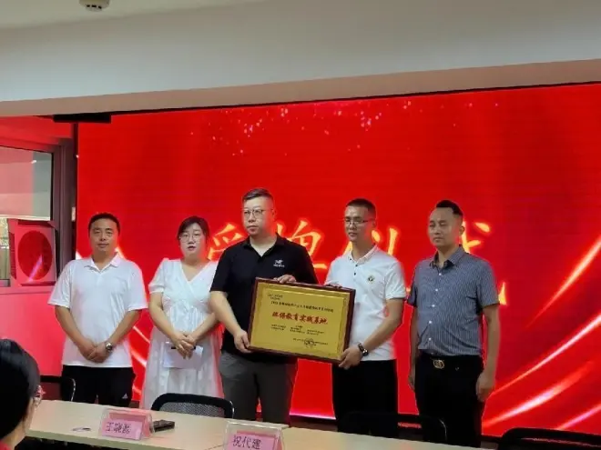 最后,进行授牌仪式,由秦岭小卫士组委会秘书长王晓磊上台授予秦岭生态小卫士环保教育实践基地标牌,由三秦阳光儿童之家负责人张科上台接牌。