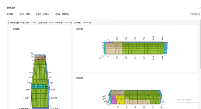(4)生成3D视觉装箱方案:悠闲装箱软件能够生成3D视觉装箱方案,用户可以直观地查看货物的摆放方式,提前了解装箱效果。