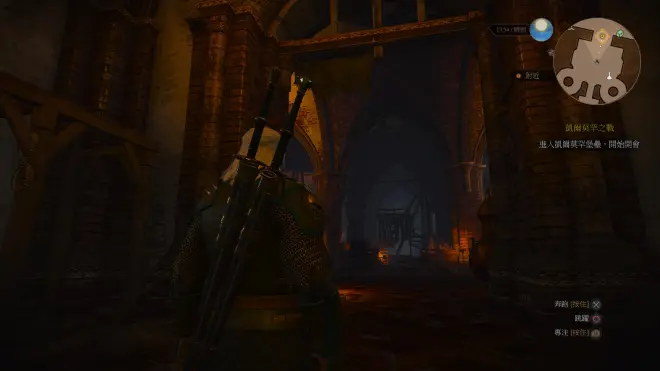 赶回狼堡,前庭已乱作一团,白狼告诉城墙上的维瑟米尔,狂猎的大部队已从树林中过来,维瑟米尔便让白狼去关闭狼堡大门,前庭的敌人会无限刷新,因此不必恋战,顺着通道上来,途中击杀跟上来的敌人,尽头拉动拉杆,关闭狼堡大门。