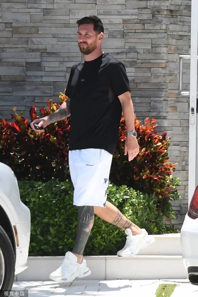 照片中的梅西,双臂甩开,大步流星出行,看上去好像走路带风。