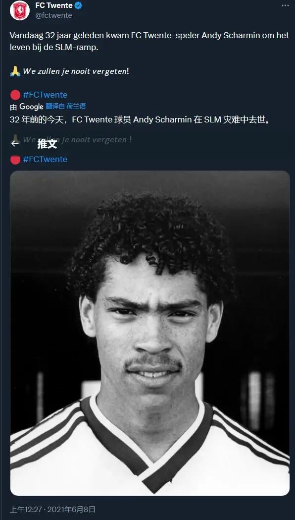 “安迪·夏尔明是一个难以想象的出色运动员,也是我的朋友”,滕哈赫几年前说道。“我永远不会忘记队友埃德温·希尔格林克站在我家门口告诉我,一架飞机与安迪和他的母亲一起坠毁了。”