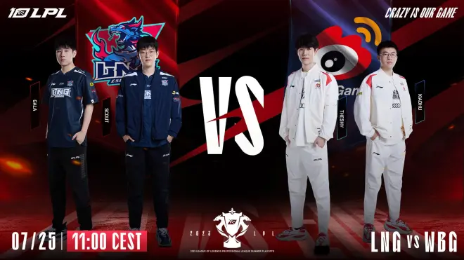 在EDG输给TES率先进入冒泡赛等待对手后,WBG和LNG的这场比赛也在25号开赛了,这场比赛有意思的点在于,谁输谁去冒泡赛的第四顺位,意味着冒泡赛没有复活甲,输掉就回家。