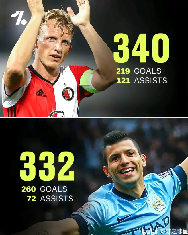 库伊特:219球121助攻,共制造340球 阿圭罗:260球72助攻,共制造332球 梅罗的记录能否有人打破?