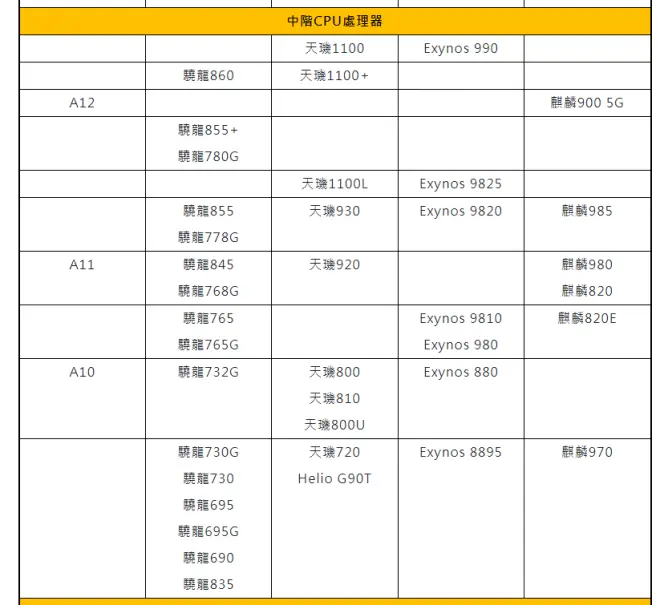 這是手機CPU等級