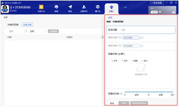 【机器人】模块主要是帮助用户实现一些自动回复的功能。