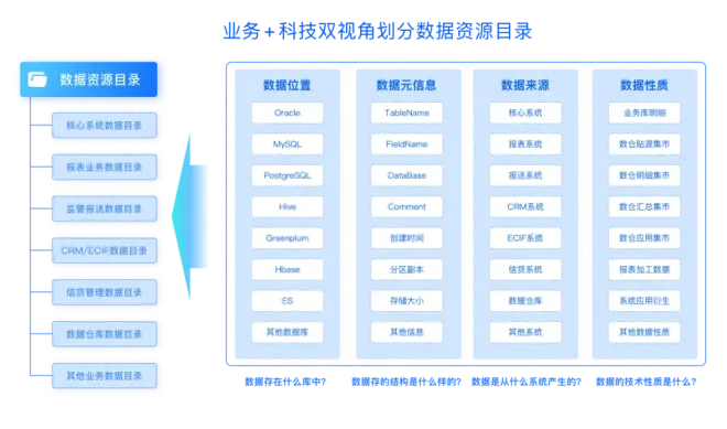 五是数据资产目录,梳理某银行业务系统、数据仓库的数据资源,完善数据各项属性元数据,构建全行级数据资产目录。